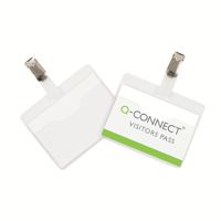 Keep track of all visitors, employees and customers at networking events or on a daily business using these Q-Connect Visitor badges. <br>Made of sturdy PVC badges, these badges are hard-wearing and versatile with drop level front opening for quick replacement of insert cards, making them the ideal badge for use in conferences, meetings and exhibitions. <br>Each badge features transparent covers and rotating clip fastener to protect but display name cards clearly and are supplied with White card inserts for writing or typing.