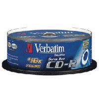 These CD-R discs are compatible with a wide range of devices, making them ideal for sharing computer data, photos, music or videos. The CD has a 700MB capacity and 52x speed. This pack contains 25 CDs on a spindle.